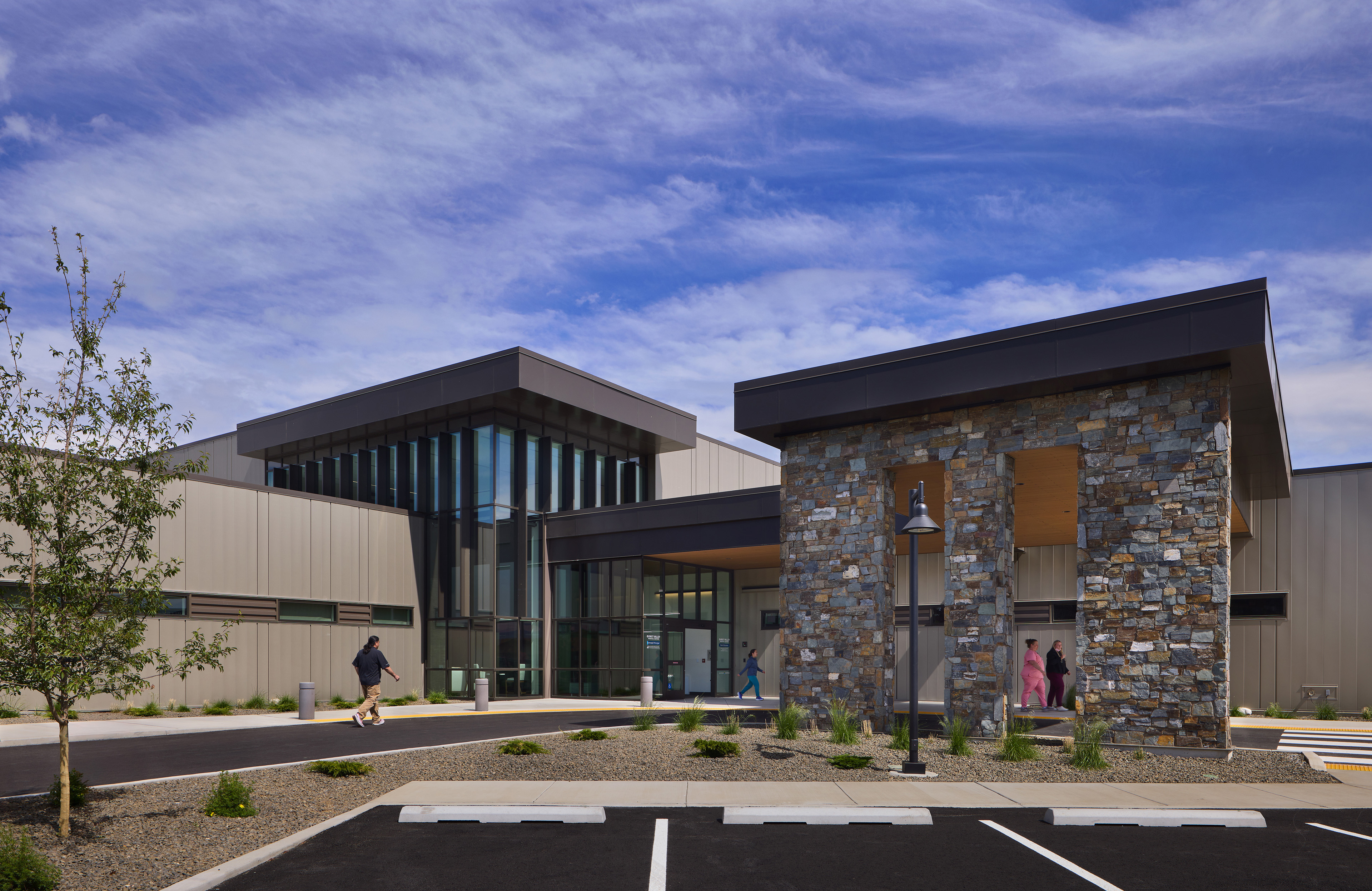 NAC Architecture designed this three-story, $41.5 million addition to the existing hospital to give a new identity to Kootenai Health. The top two floors house 64 medical/surgical patient rooms which connect on each end to the existing patient floors. The first floor features a new hospital entry lobby and the new Family Birth Center. The Birth Center includes 10 LDR rooms, 18 ante/post-partum rooms, six triage rooms, two room or cesarean suite, 12 private bed spaces, Level III NICU, and staff support spaces. In addition, the project re-orients the main inpatient entry to the north end of the hospital by providing a new covered patient/visitor drop-off and a new lobby with reception, admitting, public waiting space, elevators to the upper floors and an open stairway to the second floor.